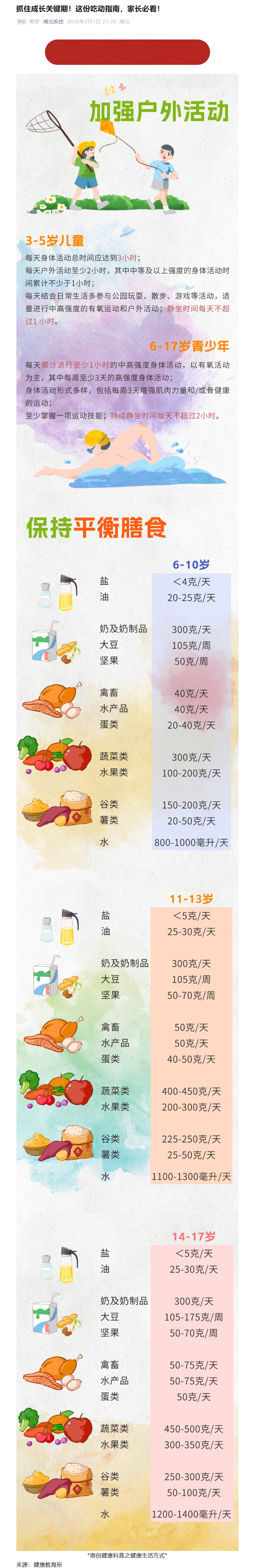抓住成长关键期!这份吃动指南,家长必看!