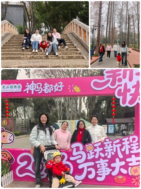 春日里的武汉植物园,百花争艳、绿意葱茏,一派生机盎然的景象。樱花、郁金香、风信子等各类花卉竞相绽放,构成了一幅绚丽的春日画卷。大家信步于花间小径,沐浴和煦春风,欣赏烂漫春色,细嗅阵阵花香,不时驻足拍照,用镜头记录下一个个美好瞬间。同事们畅谈生活趣事、分享工作经验,气氛轻松融洽,欢声笑语不断。